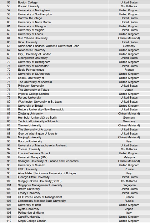 4- قائمة الجامعات المعتمدة لتخصص الإدارة والأعمال :
